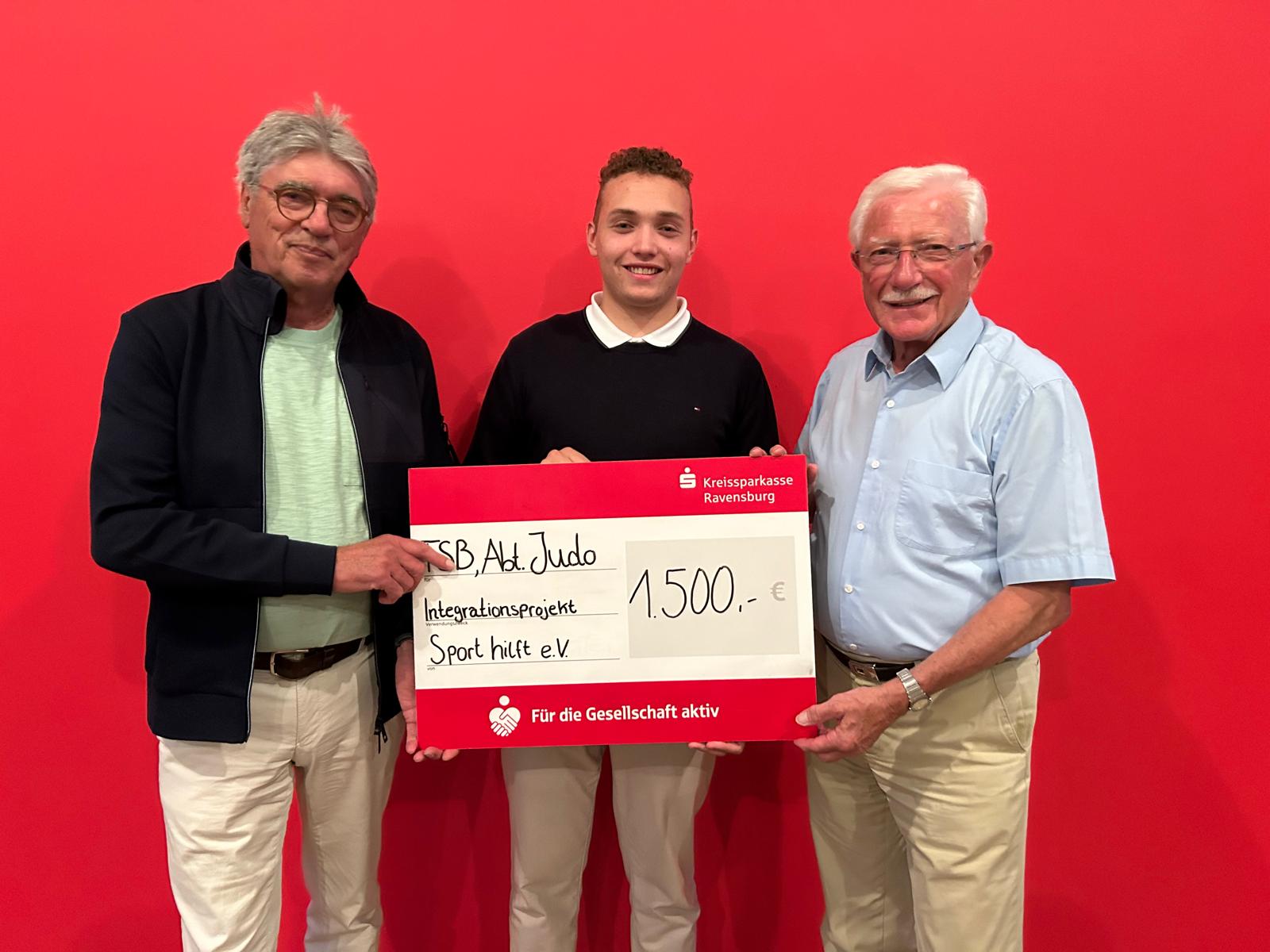 Der Vorstandsvorsitzende von "Sport hilft", Rolf Engler, hat gemeinsam mit Karlheinz Beck, Mitglied des Vorstandes, der Judoabteilung für das Engagement im Zusammenhang mit der Integration von Flüchtlingen aus der Ukraine mit einem Scheck in Höhe von 1.500 Euro gedankt.