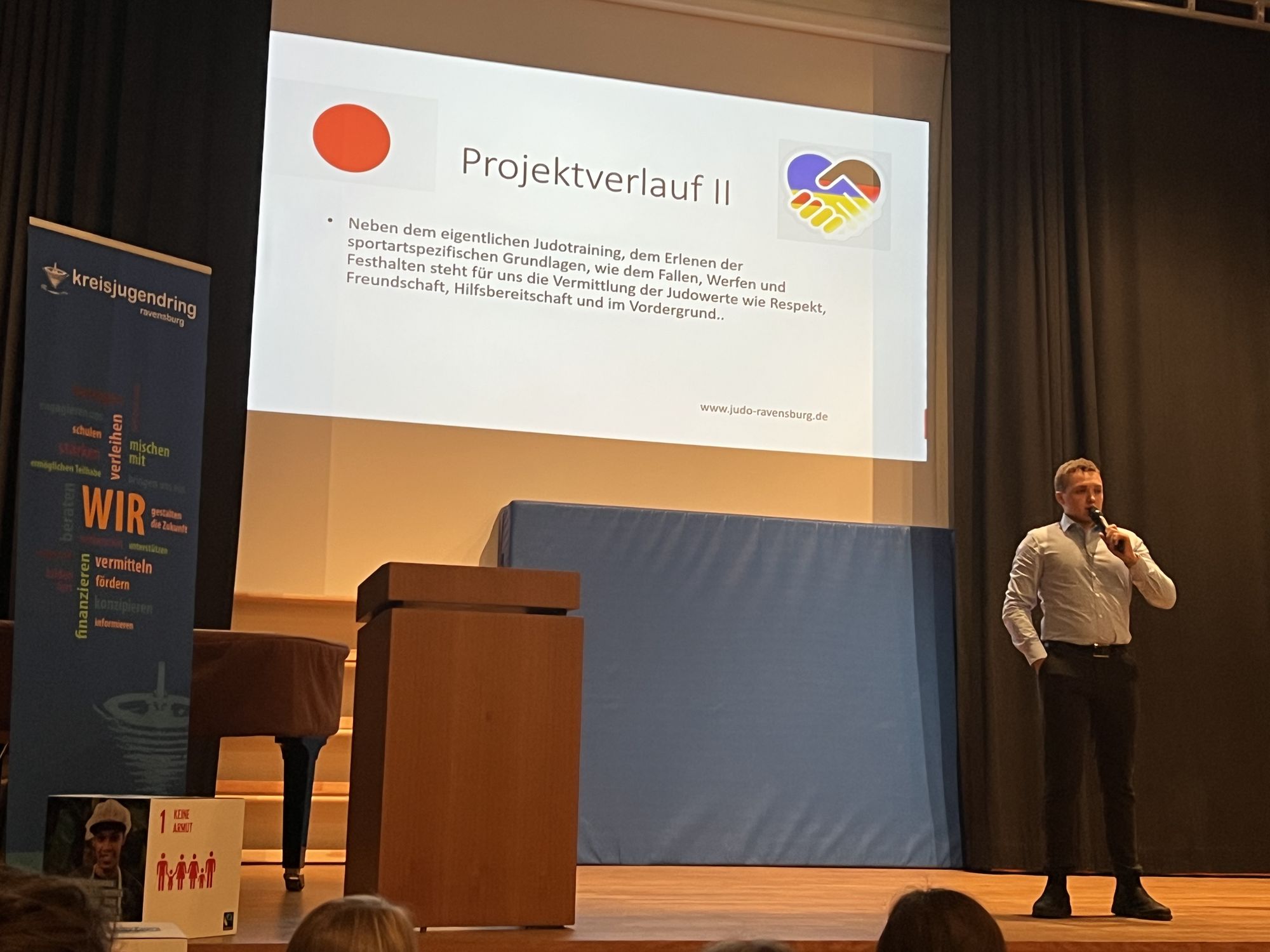 „Preisgekrönt 2022“ wurde hier am vergangenen Donnerstag in der Mensa der Gymnasien Ravensburg auch das Angebot der TSB Judoka, die mit ihrem Projekt Judo der sanfte Weg für ALLE MENSCHEN mit 20 Mitbewerbern in die Auswahl genommen wurden. Am Ende wurden die TSB Judoka mit dem dritten Platz und einem Preisgeld von 1.000 Euro belohnt.