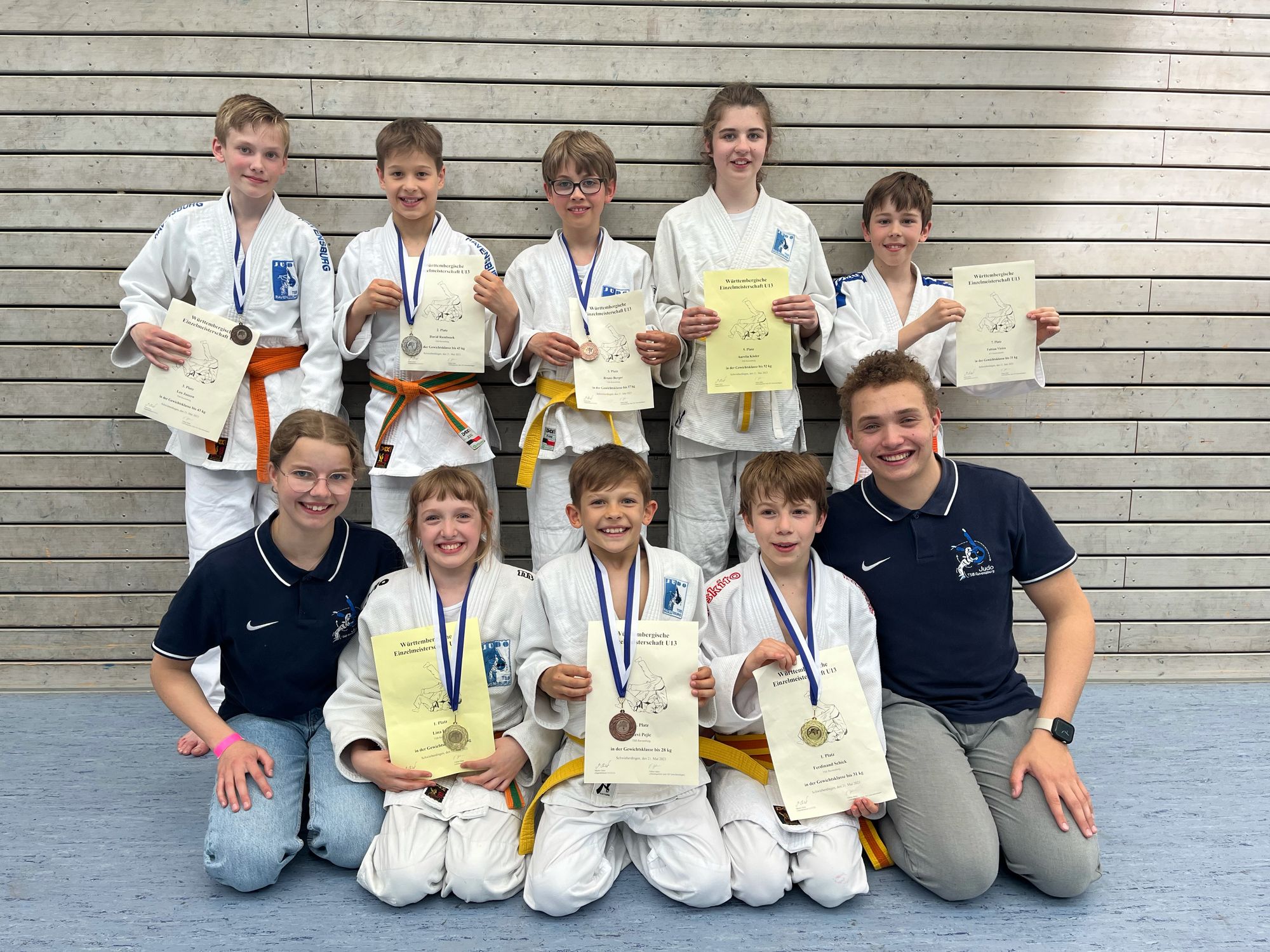 Bis 34 Kilogramm zeigte Ferdinand Schick von Anfang an, dass er seinen Titel aus dem Vorjahr verteidigen möchte. Drei vorzeitige Siege bedeuteten den Einzug ins Finale. Hier gewann Schick mit einer Kombination und sicherte sich somit erneut die Goldmedaille. Leo Janzen und David Rambosek traten beide in der Gewichtsklasse bis 43 Kilogramm an. Beide Ravensburger scheiterten nach erfolgreichen Vorrundenkämpfen an Leonidas Psaltiras (Vfl Sindelfingen). Leo Janzen unterlag im Halbfinale und wurde nach einem Sieg im kleinen Finale Dritter. Rambosek unterlag nach drei Siegen erst im Endkampf und wurde Vizemeister.Der jüngste Athlet des TSB Ravensburg Levi Pejic (bis 28 Kilogramm) kam bei zwei Siegen und einer Niederlage wie sein Vereinskamerad Bruno Berger auf einen guten 3.Platz. Berger (bis 37 Kilogramm) hatte sich nach einer Auftaktniederlage erfolgreich durch die Trostrunde gekämpft. Im kleinen Finale besiegte Berger Nikita Ivanenko vom SC Sigmaringen.