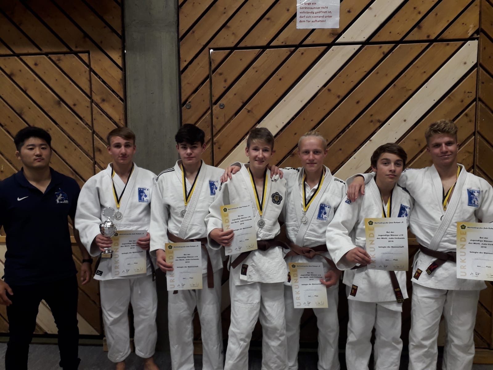 Nach weiteren Absagen waren nur drei Männerteams zur Württembergischen Mannschaftsmeisterschaft der U18 angetreten. Traurig, war die Meisterschaft ursprünglich als Liga vorgesehen. Die U 18 Jungs setzten sich gegen den KSV Esslingen mit 3:2 durch. Die Punkte holten Sascha Kramlich (-67 kg), Julius Kalfier (-58 kg) und Elias Kühn (-50 kg). Anschließend traten die Ravensburger gegen die sehr stark besetzten Nürtinger an. Trotz starker Kämpfe konnte nur Luca Gilbaut (-67 kg) einen Punkt für sein Team sichern. Die anderen mussten sich gegen das Nürtinger Team, das fast nur aus Kämpfern des Landes-, bzw. Bundeskaders bestand, knapp geschlagen geben. Die Sportkameraden aus Nürtingen holten sich somit souverän die Meisterschaft. Dass die Ravensburger dennoch zufrieden sind, liegt daran, dass man nur vier der fünf Gewichtsklassen besetzen konnte, Lion Abboud Herbert ist aktuell in den USA, und dass alle Judoka im mittleren Jahrgang sind und somit auch im nächsten Jahr in dieser Altersklasse startberechtigt sein werden. In drei Wochen kämpft das Team dann in Senftenberg (Brandenburg) bei den Deutschen Meisterschaften gegen die bundesweite Konkurrenz.